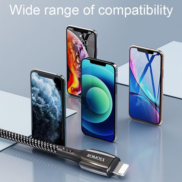 ROMOSS PD 20W Type-C to 8 Pin Braided Wear-Resistant Charging Data Cable, Length: 1.8m(Black)