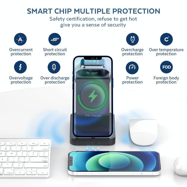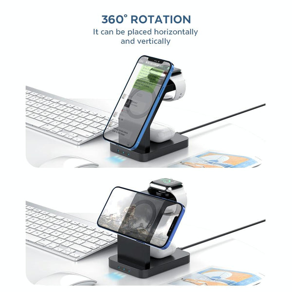 S6 3 In 1 Multi-function Magnetic Wireless Charger Stand for iPhone & iWatch & AirPods(Black)