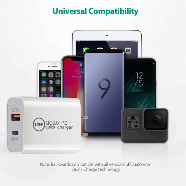 1. This charger is a dual fast charging design, supports PD3.0 and QC3.0 dual fast charging