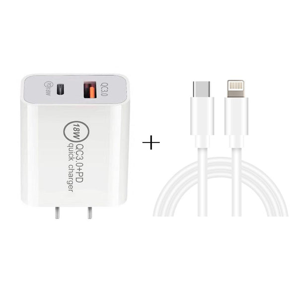 SDC-18W 18W PD 3.0 Type-C / USB-C + QC 3.0 USB Dual Fast Charging Universal Travel Charger with Type-C / USB-C to 8 Pin Fast Charging Data Cable, US Plug