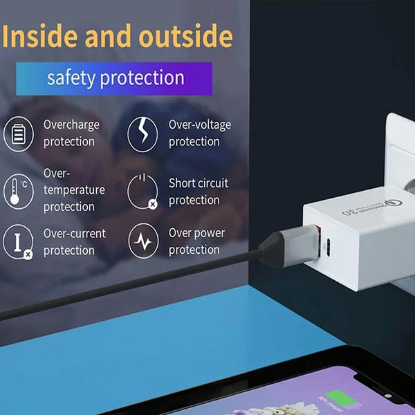 7. This charger is a dual fast charging design, supports PD3.0 and QC3.0 dual fast charging; it has a wide range of use and supports all mobile phones, tablets, cameras, MP3, MP4, PSP and other digital products to charge