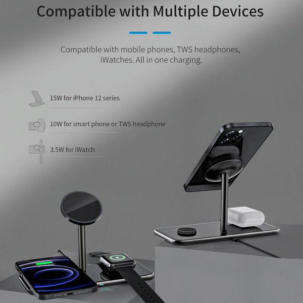 SW12 3 in 1 Metal Magnetic Wireless Charger(Black)
