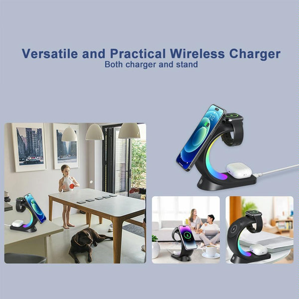 1. Three-in-one design, three devices can be charged at the same time, with higher charging efficiency