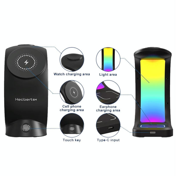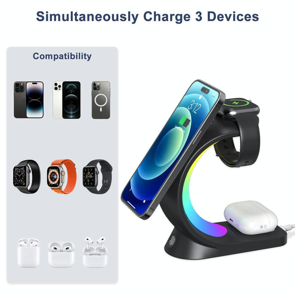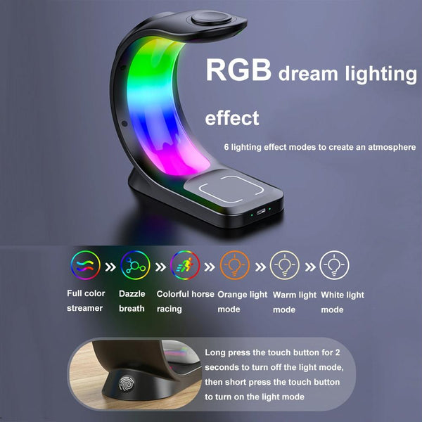 T17 3-in-1 RGB Atmosphere Light MagSafe Phone Watch Earphone Wireless Charger, Color: White no Plug