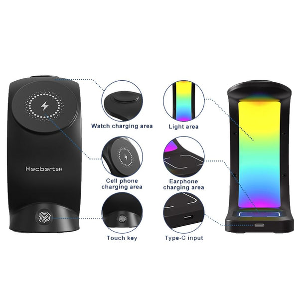 1. Three-in-one design, three devices can be charged at the same time, with higher charging efficiency