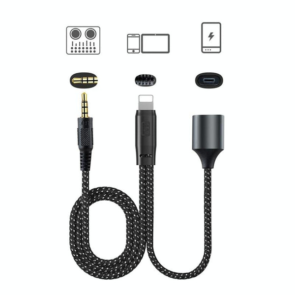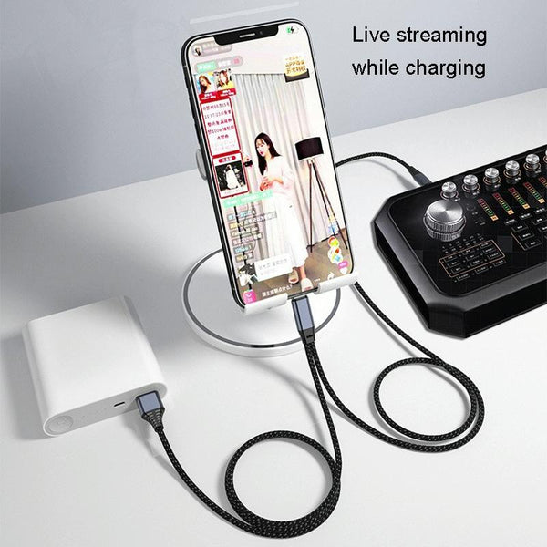 T42B 3.5mm Male+8 Pin Male+8 Pin Female Live OTG Sound Card Cable Mobile Phone Charging Audio Recording Data Cable