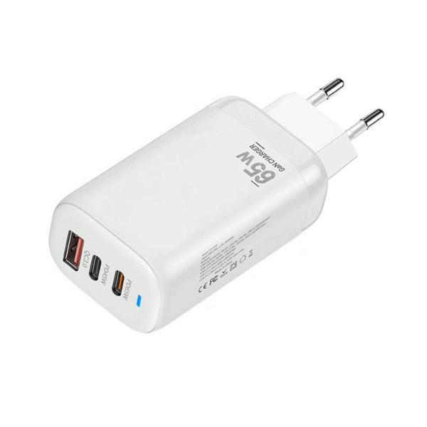 TE-65W GaN PD65W Dual USB-C+USB-A Laptop / Tablet AdapterEU Plug(White)