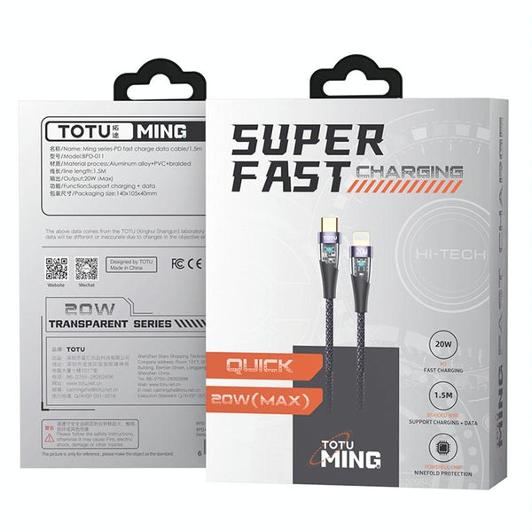 TOTU BPD-011 Ming Series PD 20W Type-C to 8 Pin Fast Charging Data Cable Length:1.5m(Black)