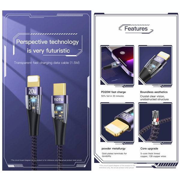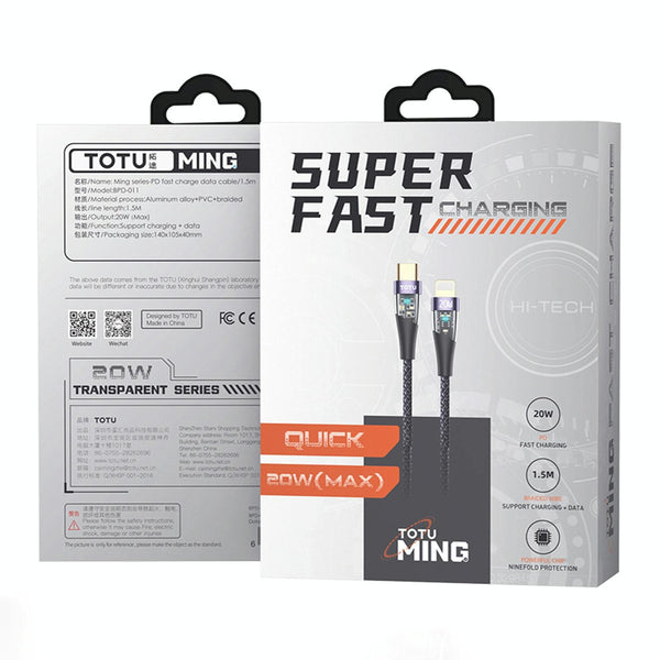 TOTU BT-018 Ming Series 3A USB to 8 Pin Fast Charging Data Cable, Length:1.5m(Black)