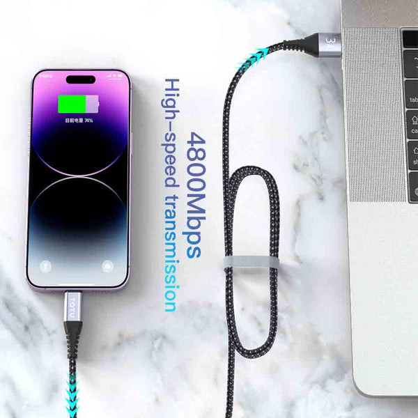 TOTU CB-5-3 3 in 1 17.5W USB to 8 Pin+Micro USB+USB-C/Type-C Multifunctional Data Cable, Length: 1.2m(Grey)
