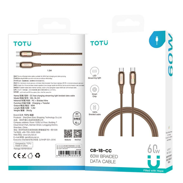 TOTUDESIGN CB-18-T 1.2m Glowing USB-A to USB-C / Type-C Charging Data Cable(Black)