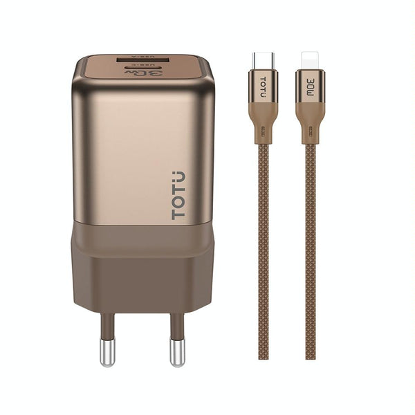TOTUDESIGN HC-9 30W USB-A to Type-C GaN Fast Charger, Plug:EU Plug with Type-C to 8 Pin Cable(Gold)