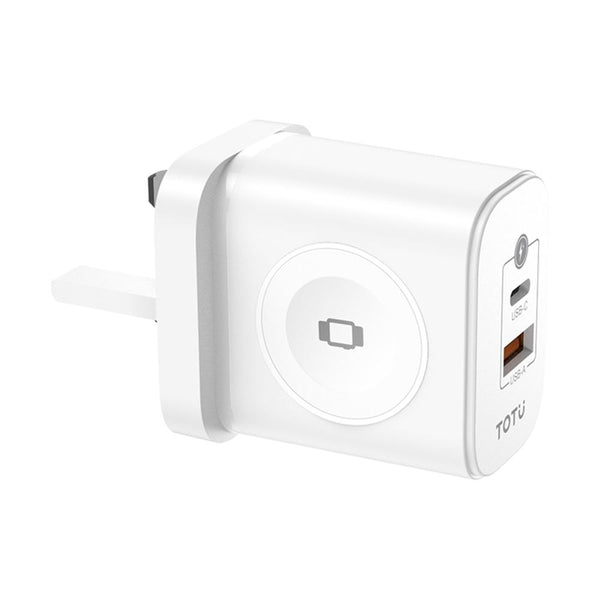 TOTUDESIGN UW128 23W USB-A to Type-C GaN Watch Fast Charging Travel Charger, Plug:UK Plug(White)