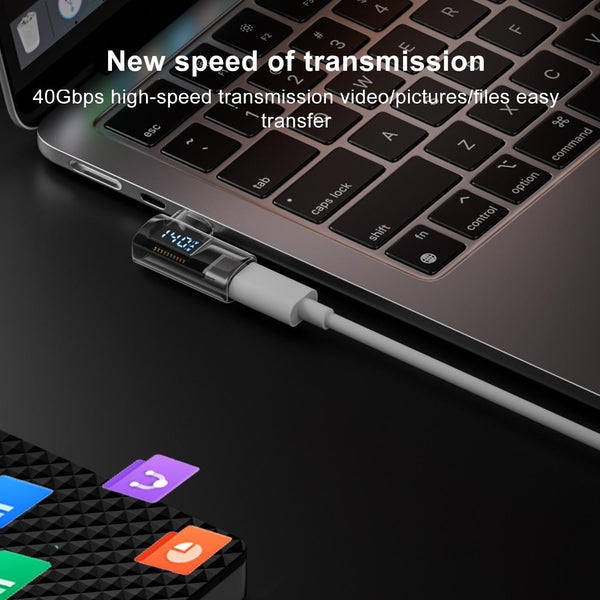 Type-C Male to Type-C Female Smart Digital Display Side Bend Charging Adapter(Light Black)