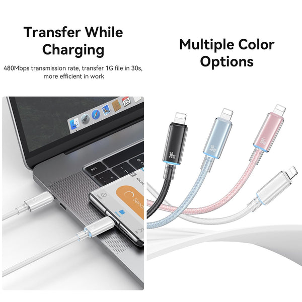 USAMS Type-C To 8 Pin Aluminum Alloy Clear LED 30W PD Fast Charge Data Cable, Length:1.2m(Black)