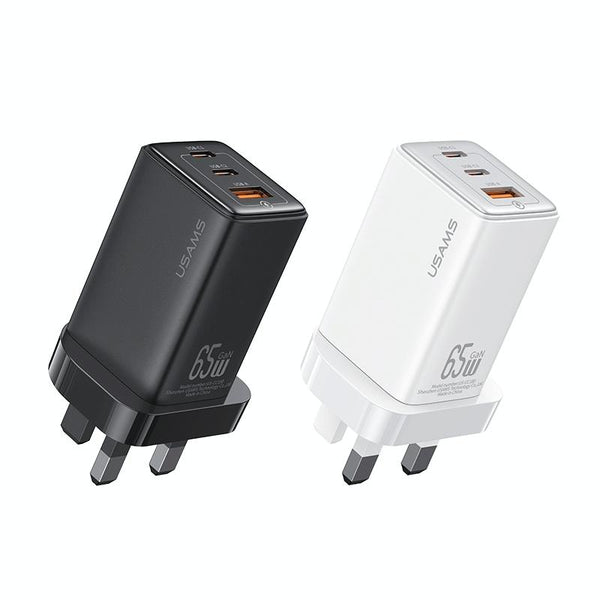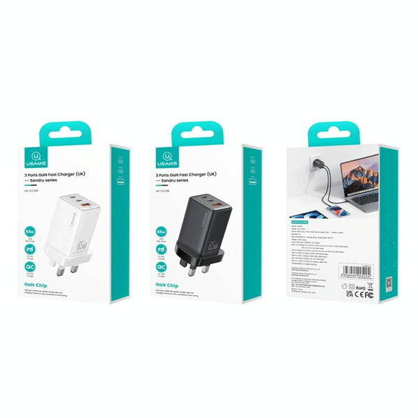 USAMS US-CC196 65W ACC Three Ports GaN Charger, UK Plug(Black)