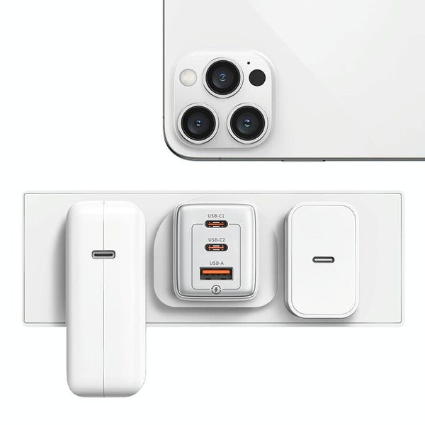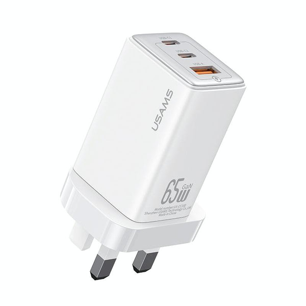 USAMS US-CC196 65W ACC Three Ports GaN Charger, UK Plug(White)