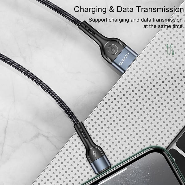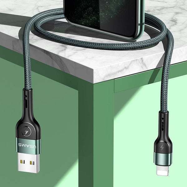 USAMS US-SJ448 U55 2A 8 Pin Aluminum Alloy Weave Charging Cable, Length:1m (Green)