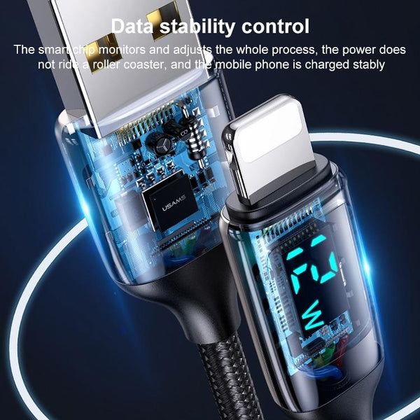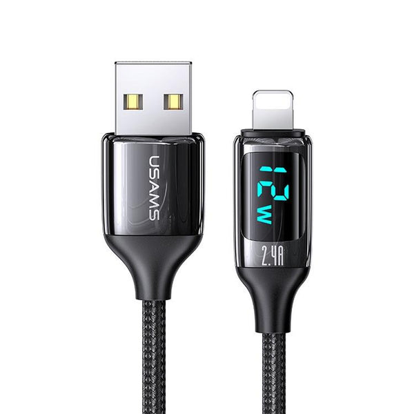 USAMS US-SJ543 U78 8 Pin Aluminum Alloy Digital Display Charging Data Cable, Length: 1.2m (Black)
