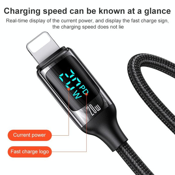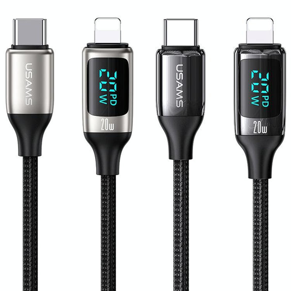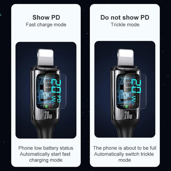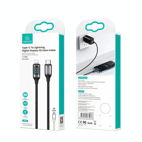 USAMS US-SJ545 U78 Type-C / USB-C to 8 Pin PD Aluminum Alloy Digital Display Fast Charging Data Cable, Length: 1.2m(White)