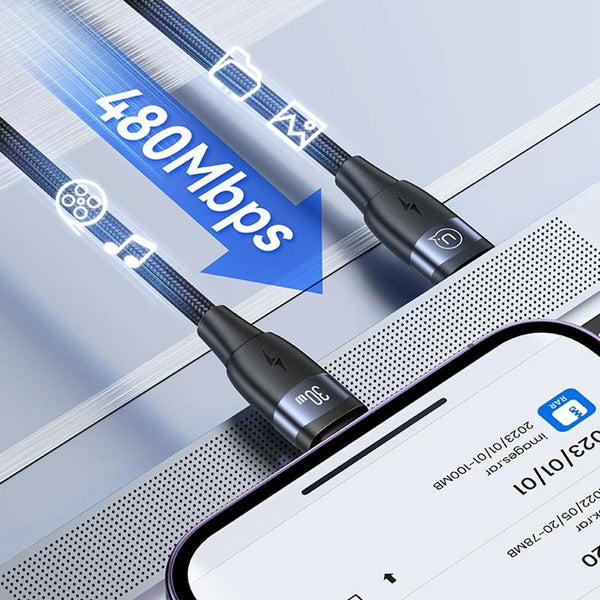 USAMS US-SJ635 U85 2m Type-C to 8 Pin PD30W Aluminum Alloy Fast Charging & Data Cable(Black)