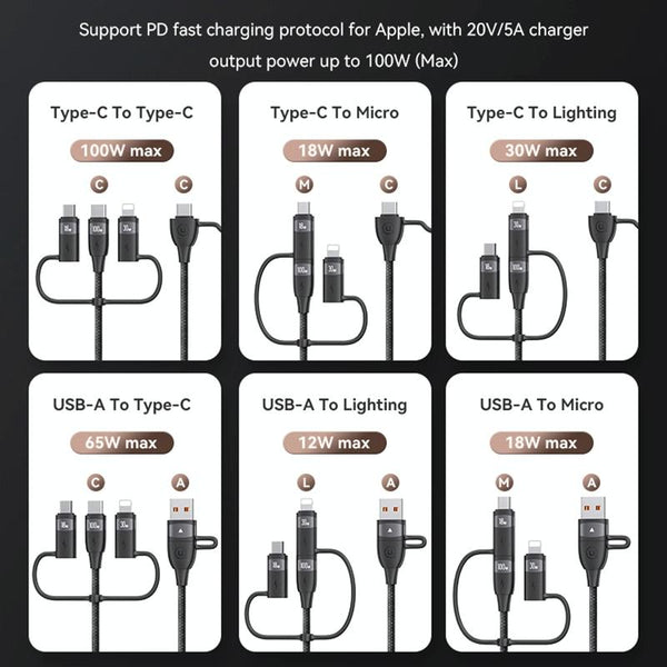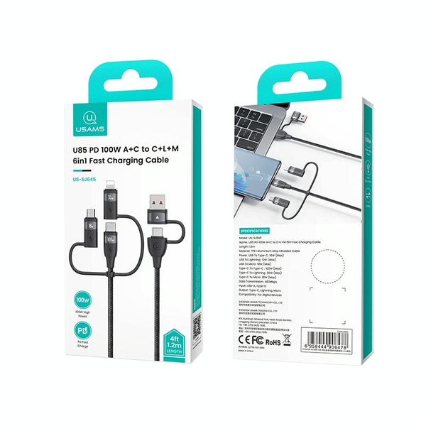 USAMS US-SJ646 U85 2m PD100W 6 in 1 Alloy Multifunctional Fast Charging Cable(Purple)
