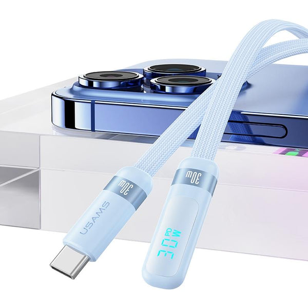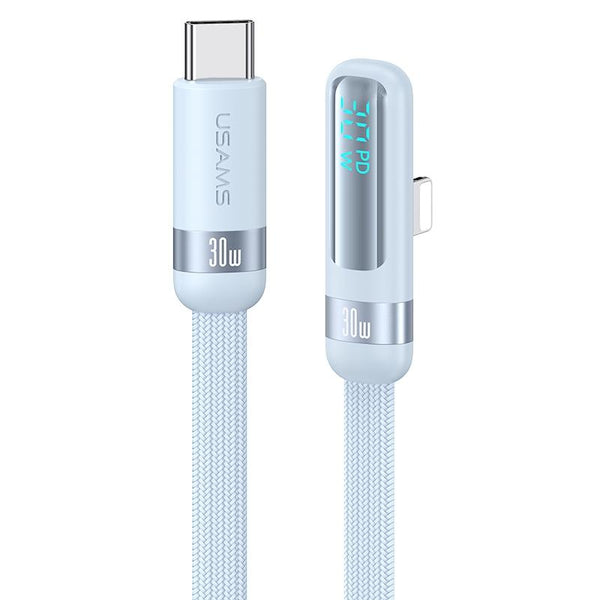 USAMS US-SJ652 PD 30W USB-C/Type-C to 8 Pin Aluminum Alloy Digital Display Fast Charging Elbow Data Cable, Length: 1.2m(Blue)