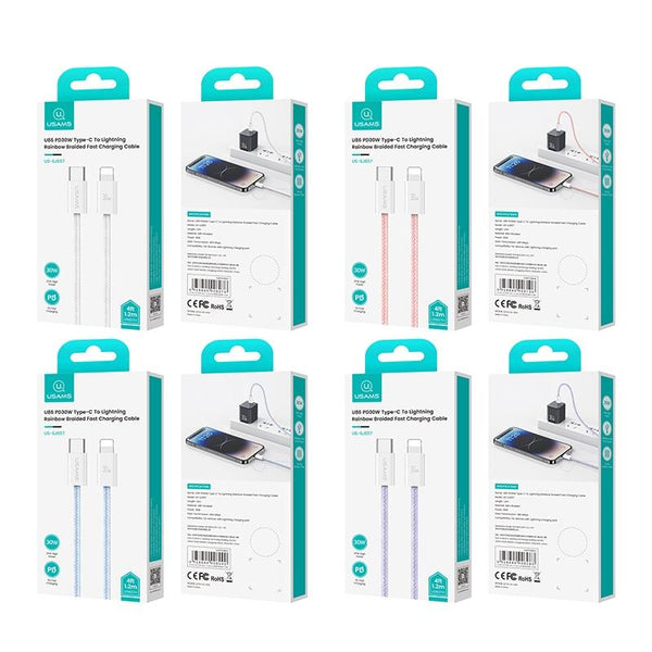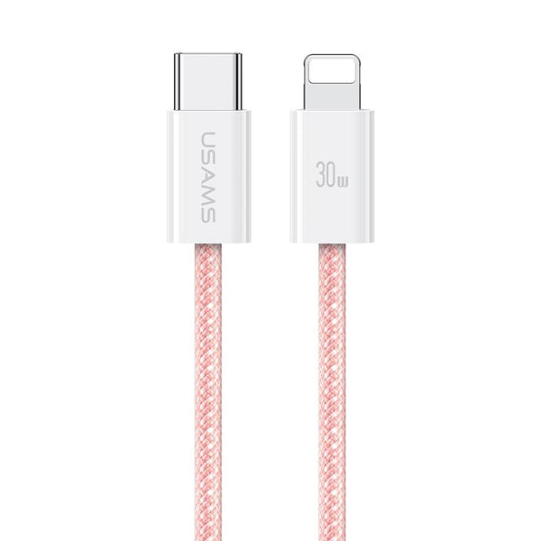 USAMS US-SJ657 U86 PD30W USB-C/Type-C to 8 Pin Rainbow Braided Fast Charging Data Cable, Length: 1.2m(Pink)