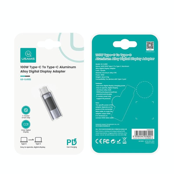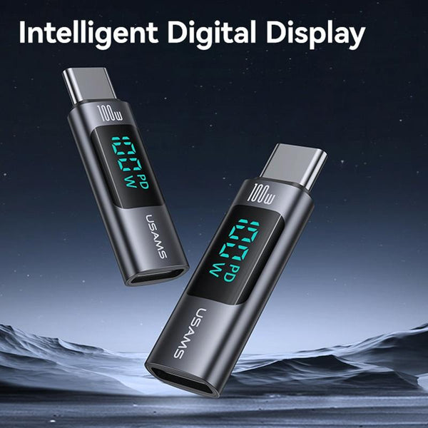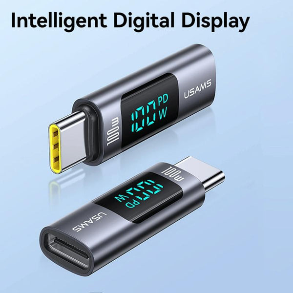 USAMS US-SJ682 AU18 PD100W USB-C / Type-C to USB-C / Type-C Aluminum Alloy Digital Display Adapter(Tarnish)