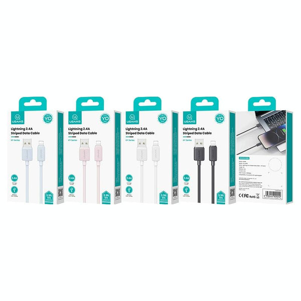 USAMS US-SJ689 USB to 8 Pin 2.4A Striped Fast Charge Data Cable, Length:1m(Pink)