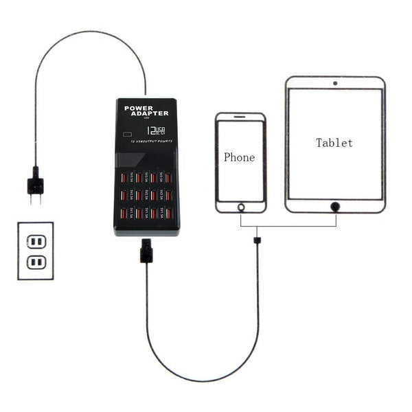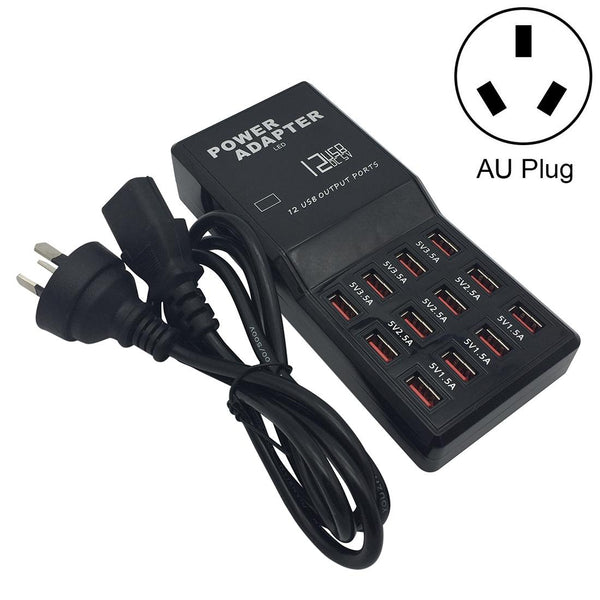 W-858 12A 12 Ports USB Fast Charging Dock Desktop Smart Charger AC100-240V, AU Plug (Black)