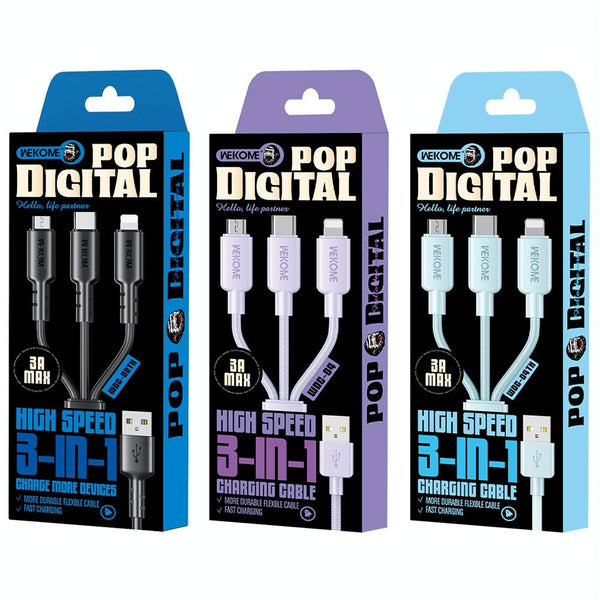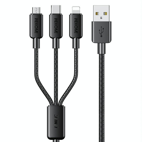 WEKOME WDC-04 Tidal Energy Series 3A USB to 8 Pin+Type-C+Micro USB 3 in 1 Braided Data Cable, Length: 1.2m (Black)