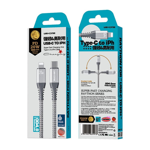 WEKOME WDC-171 Raython Series PD 20W Type-C to 8 Pin Fast Charge Data Cable Length: 1m(Silver)