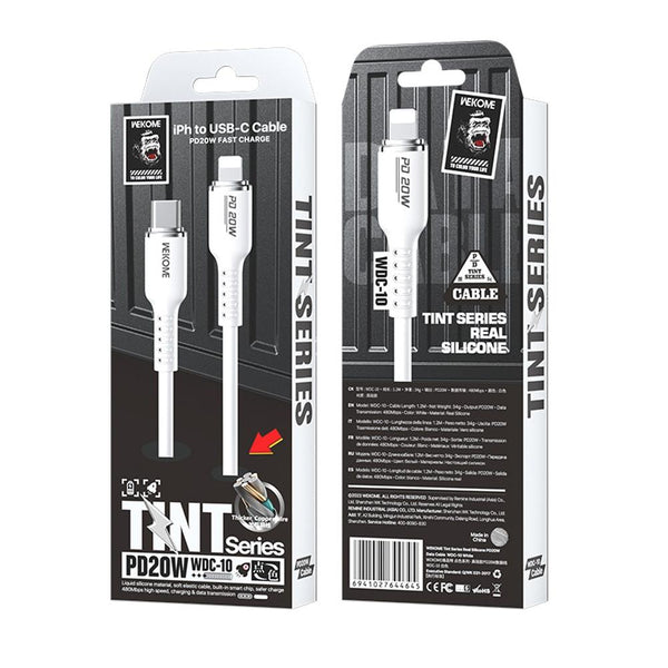 WK WDC-10 PD 20W USB-C/Type-C to 8 Pin Silicone Data Cable, Length: 1.2m(White)