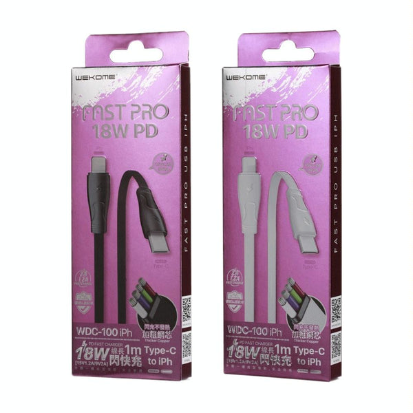 WK WDC-100 1m 2.0A Output Speed Pro Series PD 18W Fast Charging USB-C / Type-C to 8 Pin Data Sync Charging Cable (Black)