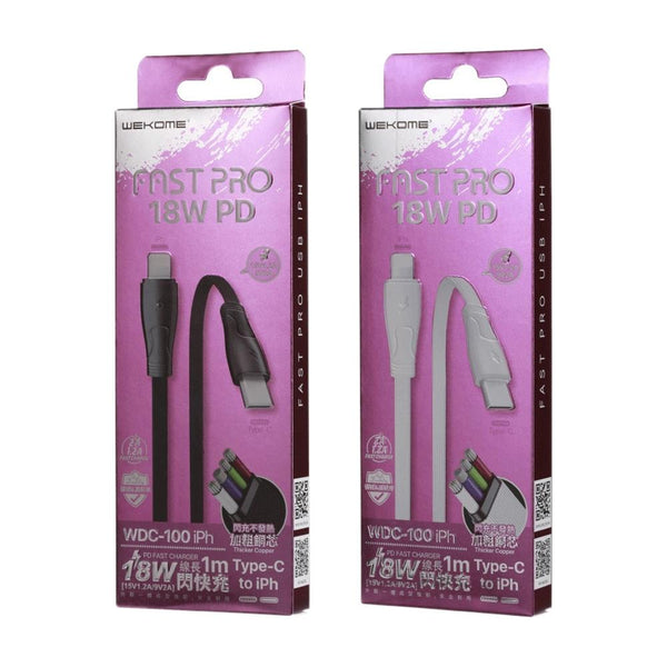 WK WDC-100 1m 2.0A Output Speed Pro Series PD 18W Fast Charging USB-C / Type-C to 8 Pin Data Sync Charging Cable (White)
