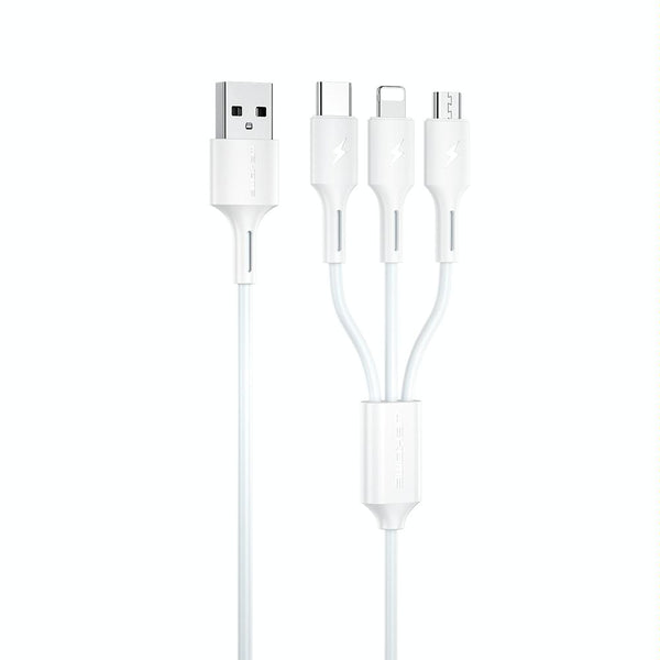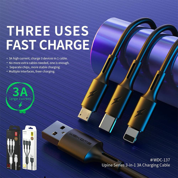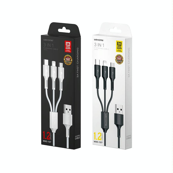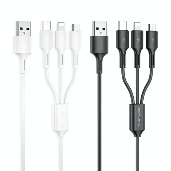 WK WDC-137 3 in 1 USB to Micro USB / 8 Pin + USB-C / Type-C 3A Fast Charing Cable(White)