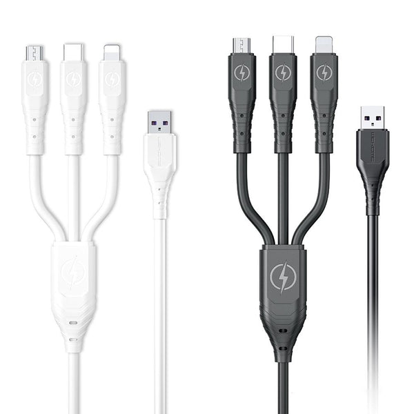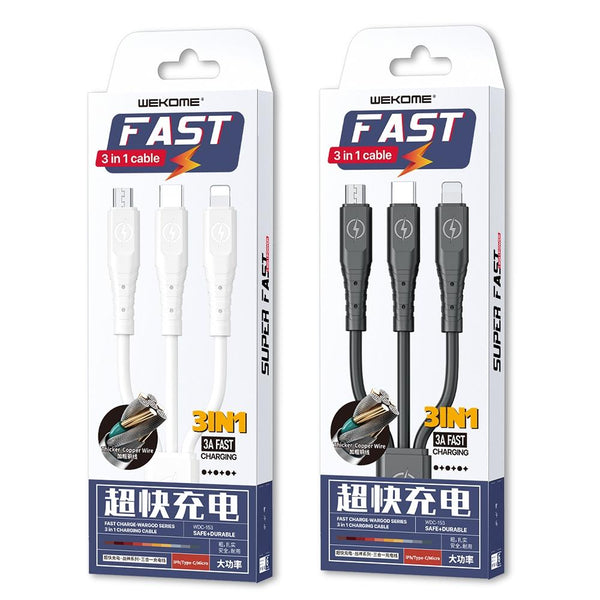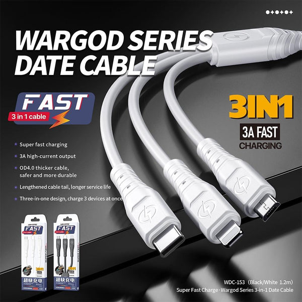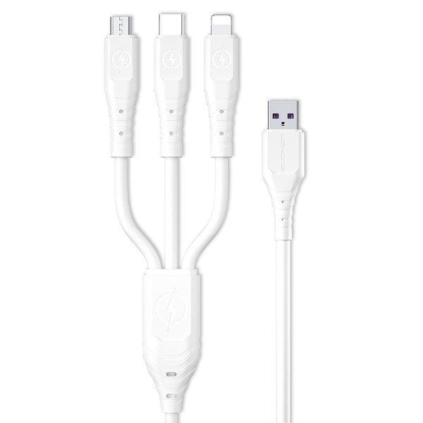 WK WDC-153 8 Pin + Type-C / USB-C + Micro USB 3 In 1 Fast Charging Data Cable, Length: 1.2m (White)