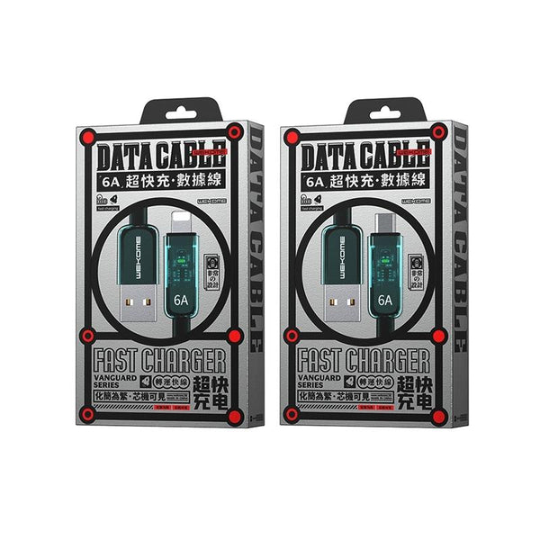 WK WDC-180 6A Pioneer Series USB to 8 Pin Transparent Fast Charge Data Cable, Length: 1m(Black)