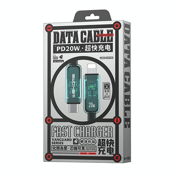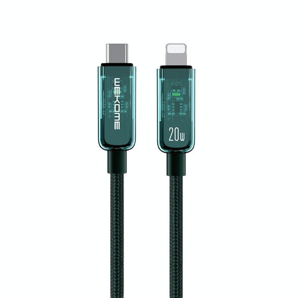 WK WDC-181 PD 20W Pioneer Series USB-C/Type-C to 8 Pin Transparent Fast Charge Data Cable, Length:1m (Green)
