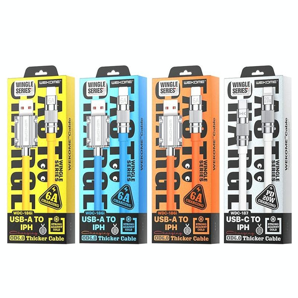 WK WDC-186 Qjie Series 6A USB to 8 Pin Ultra-fast Charging Data Cable, Length: 1m (Yellow)