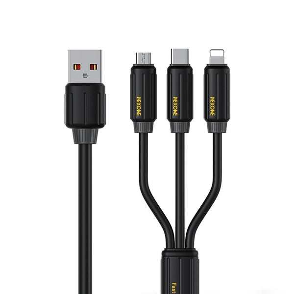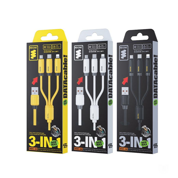 WK WDC-30 Elastic Silicone 1.2m 66W USB to 8 Pin / Type-C / Micro USB Fast Charging Data Cable(Black)