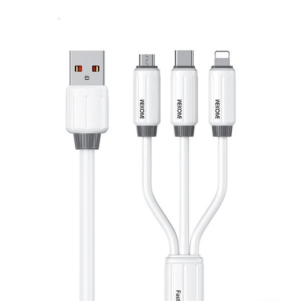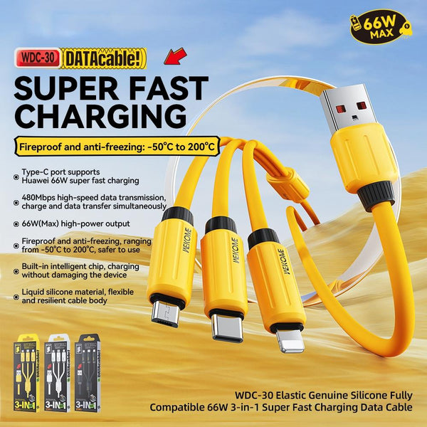 WK WDC-30 Elastic Silicone 1.2m 66W USB to 8 Pin / Type-C / Micro USB Fast Charging Data Cable(White)
