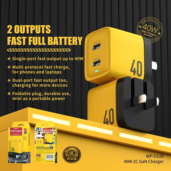 WK WP-U128 40W Dual USB-C/Type-C Interface Gallium Nitride Charger,Specifications: CN Plug