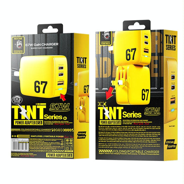 WK WP-U141 67W USB+Double USB-C / Type-C GaN Charger, Plug:CN Plug(Yellow)