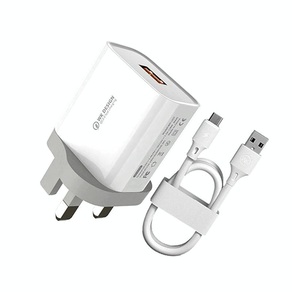 WK WP-U57 Max 18W Maxspeed QC3.0 Fast Charger + USB to 8 Pin Data Cable, Plug Type:UK Plug