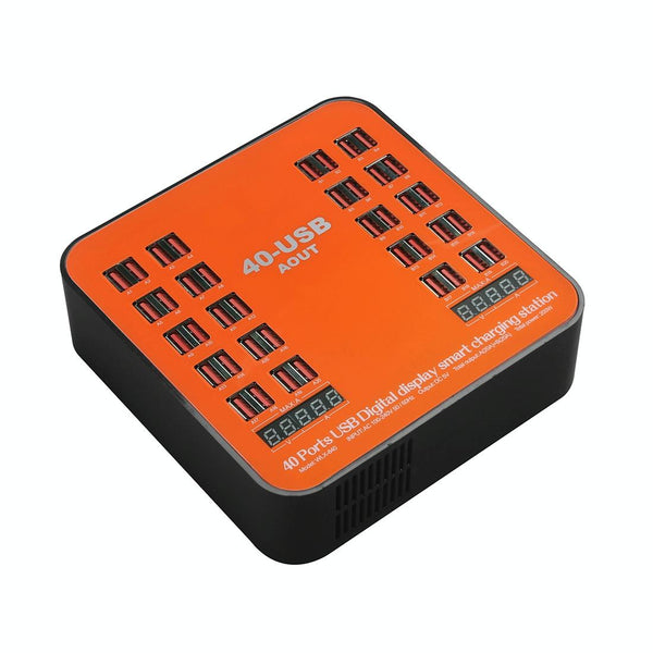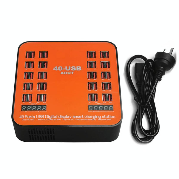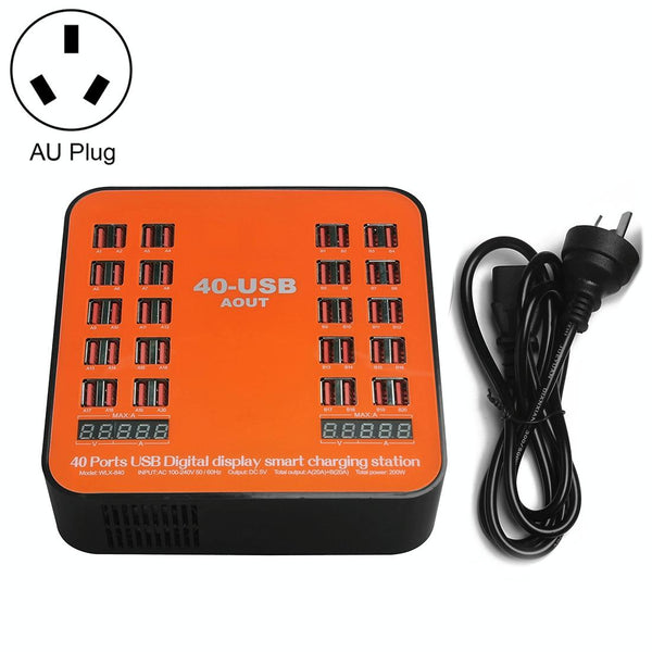 WLX-840 200W 40 Ports USB Digital Display Smart Charging Station AC100-240V, AU Plug (Black+Orange)