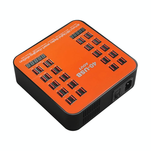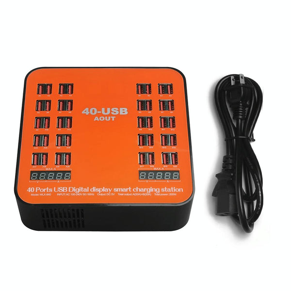 WLX-840 200W 40 Ports USB Digital Display Smart Charging Station AC100-240V, US Plug (Black+Orange)