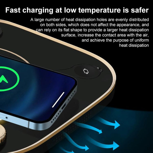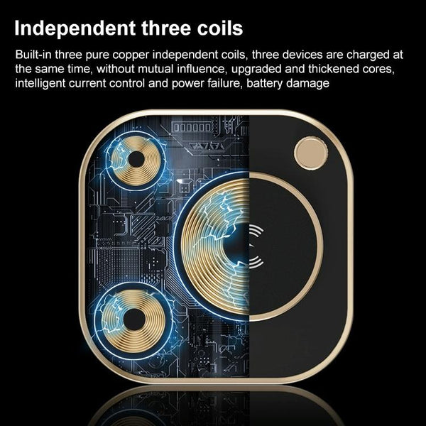 3. Intelligent identification chip, automatically identify different mobile phone charging architectures to provide suitable current, high-efficiency charging also takes one step faster! Three devices synchronize wireless power supply, charging does not wait.