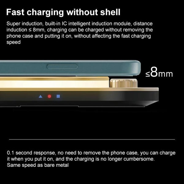 4. Super induction, built-in intelligent induction module, distance induction is less than or equal to 8mm, charging can be done without removing the phone case and putting it on without affecting the fast charging speed.